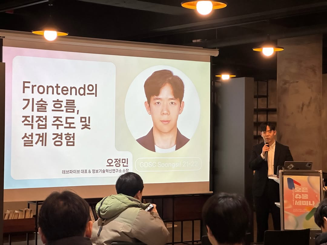 발표에서는 'Devup UI'의 실제 활용 방안을 보여주는 직접 시연이 진행되었습니다. 오정민 대표는 프로젝트 개발 과정에서 얻은 다양한 경험과 인사이트를 학우들과 나누며, 실무진의 관점에서 바라본 개발 프로세스의 실제적인 측면들을 공유했습니다.