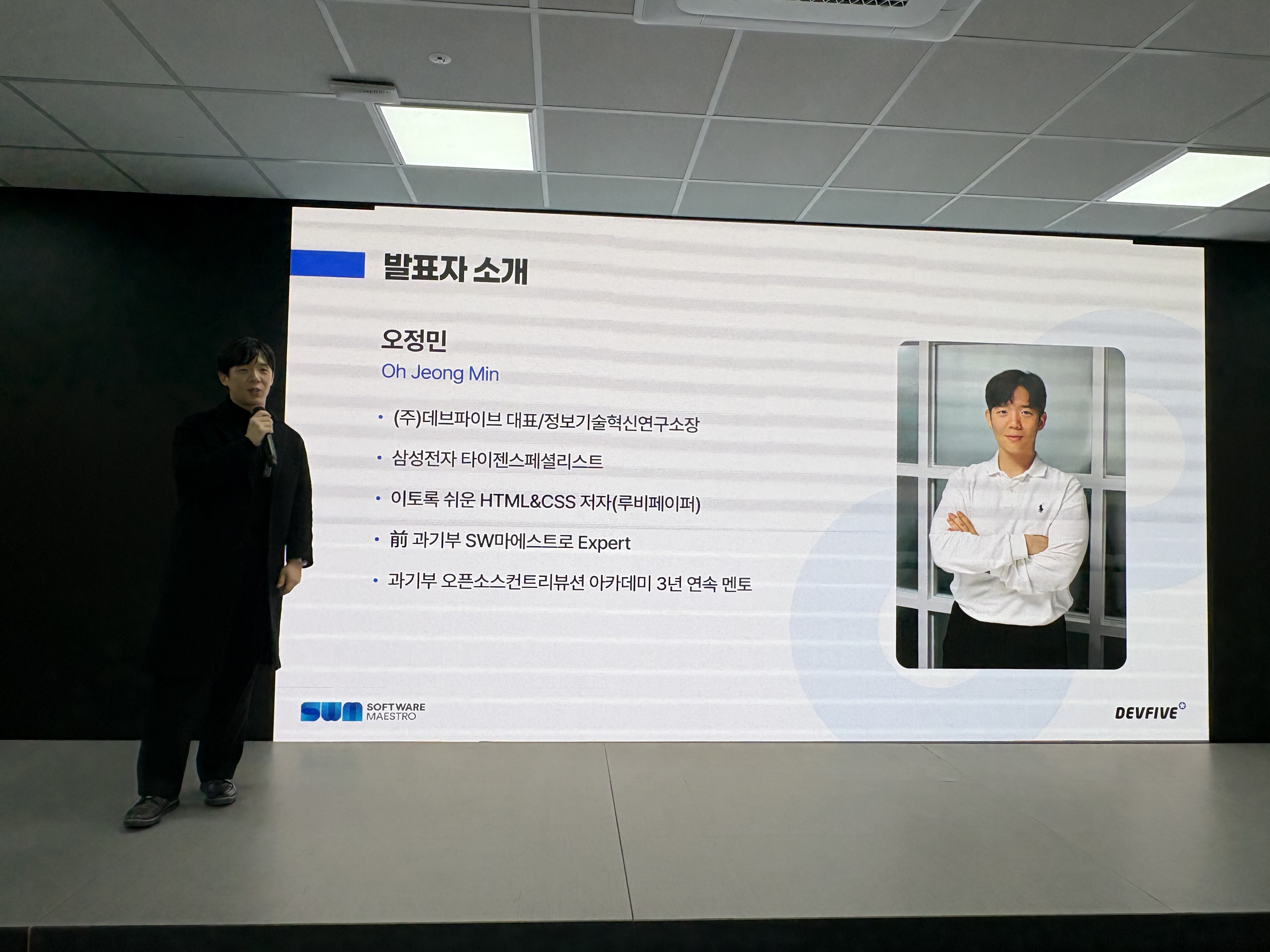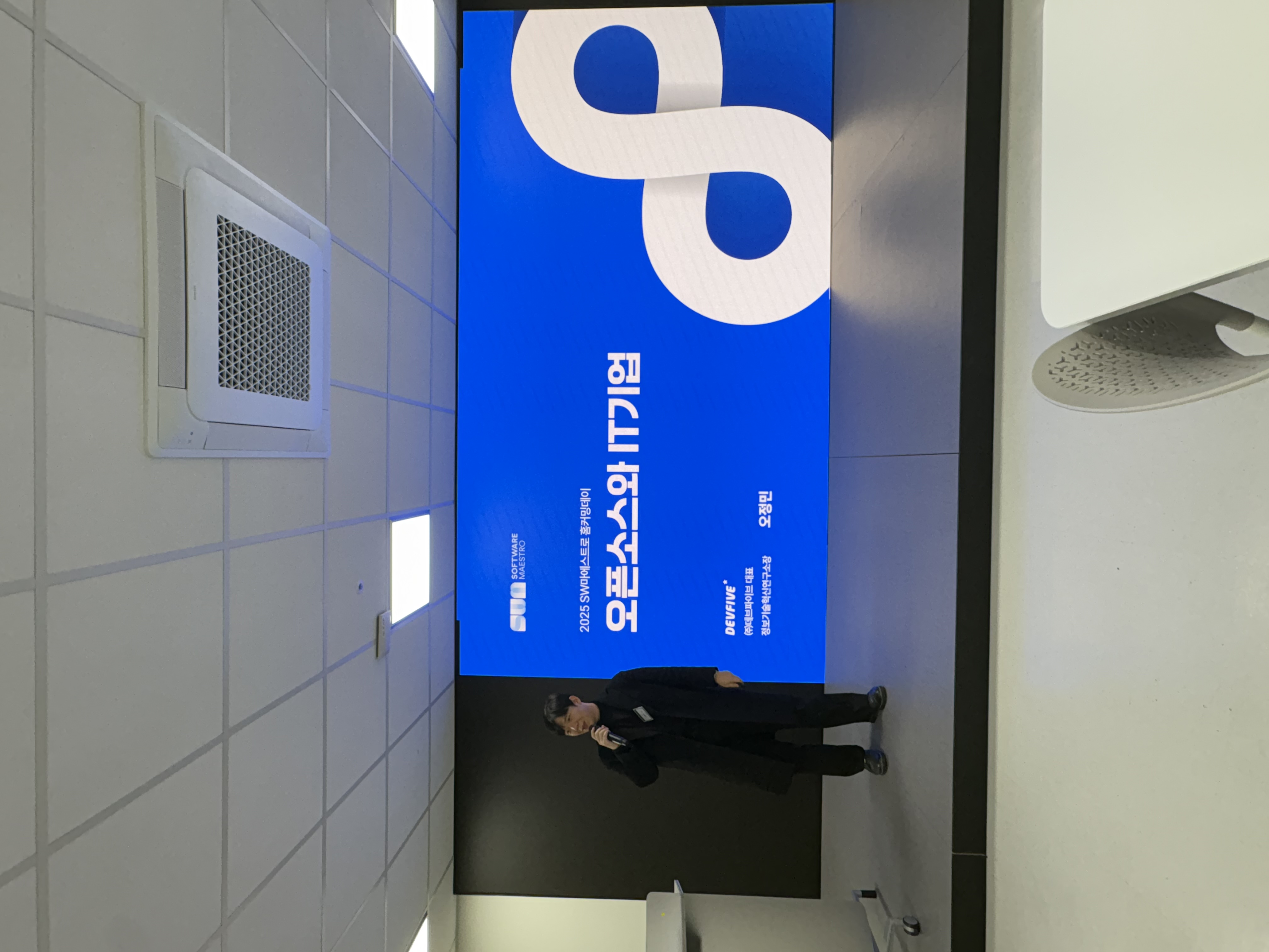 과학기술정보통신부가 주관한 소프트웨어 마에스트로 홈커밍데이가 지난 수요일 개최되었으며, 데브파이브는 행사에서 「오픈소스와 IT기업」을 주제로 발표를 진행했다.