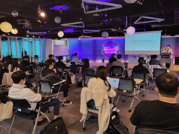이번 6월부터 진행된 2021 청년창업 SMART2030 사업은 경기도내 창업을 꿈꾸는 예비창업가를 모집해 온-오프라인 창업 교육, 1:1 멘토링, 네트워킹 등을 지원했다. 성과공유회는 참여기업 간 사업 성과를 공유하는 자리로 마련되었다.